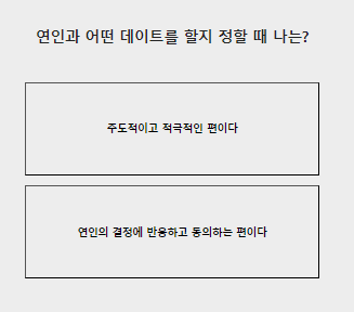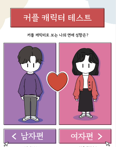 커플 캐릭터 테스트도 있습니다 이것도 남자편, 여자편으로 두개로 나눠서 진행할 수 있습니다.