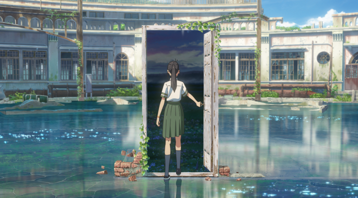 소타에게 흥미가 생긴 스즈메는 그가 찾는 폐허에 갔고, '낡은 문'을 발견하게 된다. 무언가에 홀린 것처럼 스즈메는 그 문을 열어 문 안에는 하늘에 별이 가득 차있어 깜짝 놀랐으며 문 안으로 들어가 보려 하지만 문 안으론 들어갈 수 없다.