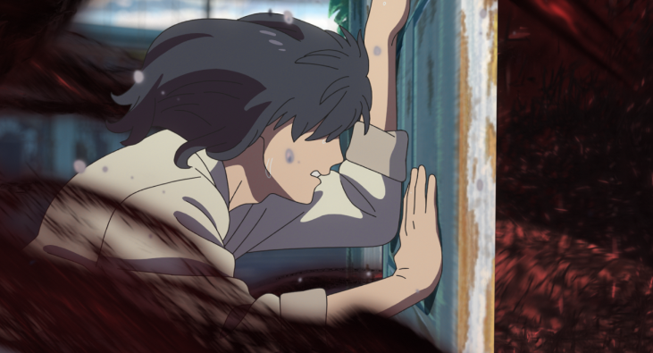 스즈메가 문 근처에 있는 요석을 집어 들자 그 요석은 하얀 동물로 변해 사라졌고, 스즈메는 모든 일들이 혼란스럽기만 하다 폐허를 나와 학교에 갔다. 하지만 아까 방문했던 곳에 빨간색 연기가 피어오르는 것을 보고 놀란 스즈메는 폐허로 달려가게 된다.